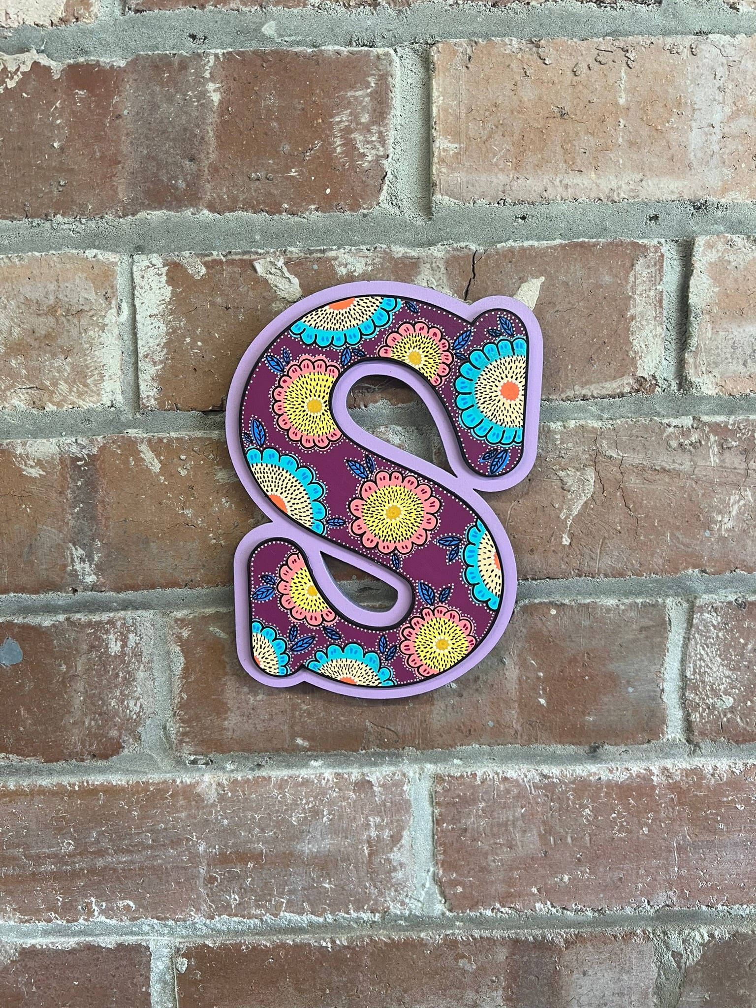 Add a playful touch to your space with our hand painted 'S' initial sign! This piece has been hand painted and features a abstract floral pattern in bold bright colours on two layers. A perfect addition to your home décor and even more perfect for elevating your gallery walls